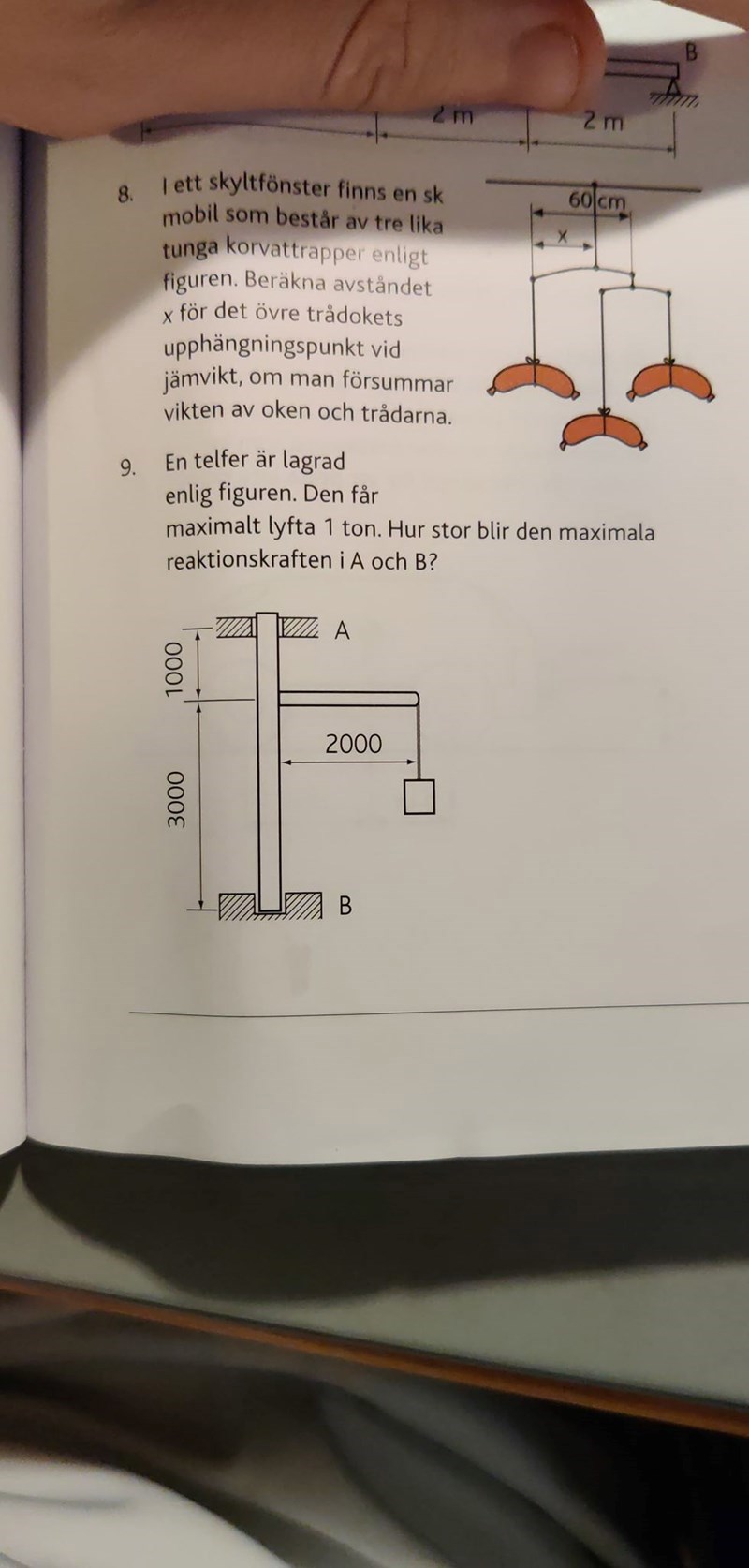 Hej! Jag skulle gärna vila få hjälp med fråga nr 9. Jag har räknat ut reaktionskraften i A, men jag lyckas inte få rätt svar på B. Det jag har gjort är