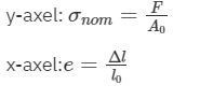 På den vertikala axeln visas spänningen σ\sigma som är den pålagda kraften dividerad med tvärsnittsarean (provets ursprungliga tvärsnittsarea), σ = F/A.