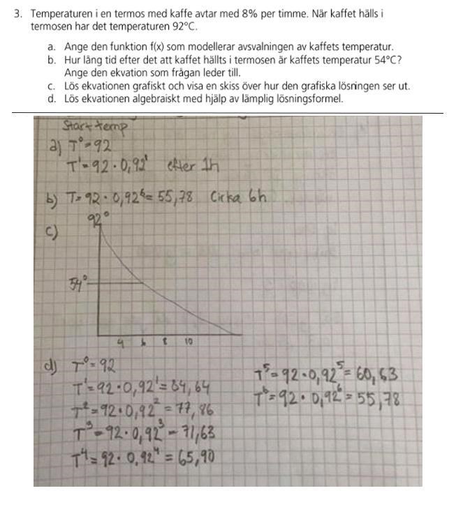 Temperaturen i en termos med kaffe avtar 8% per timme - Fråga