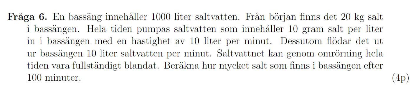 Tenta fråga - Lösa verkliga problem genom ställa upp en D.E