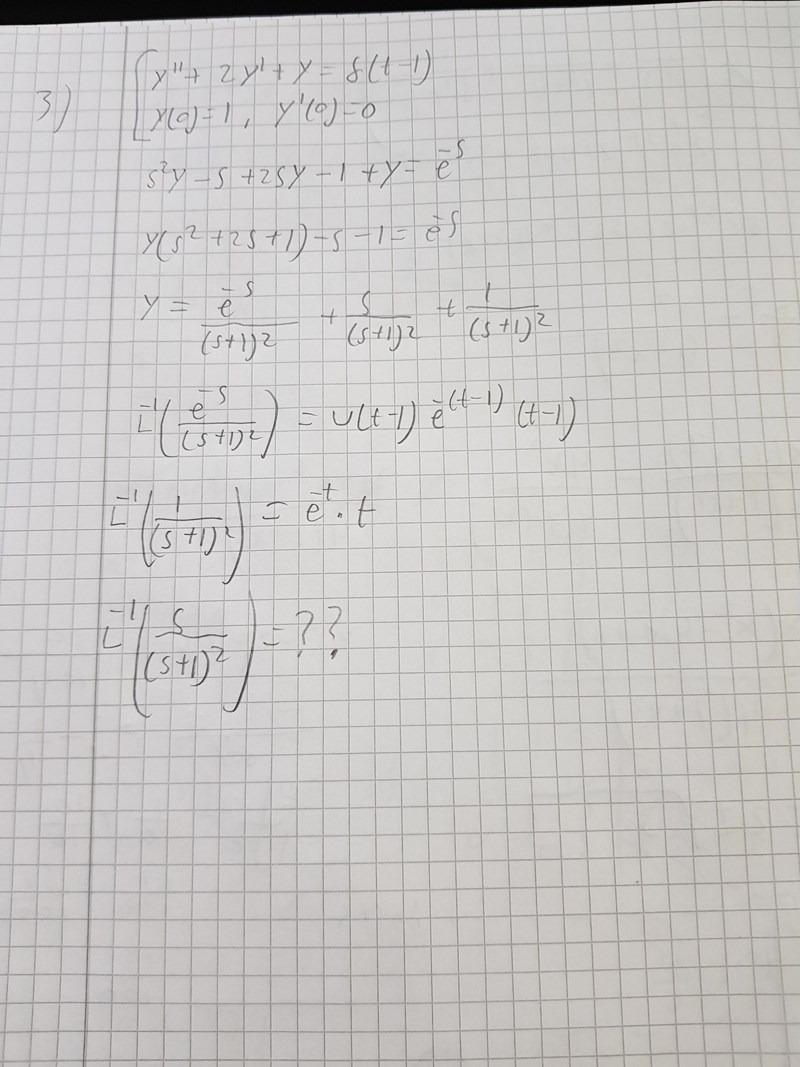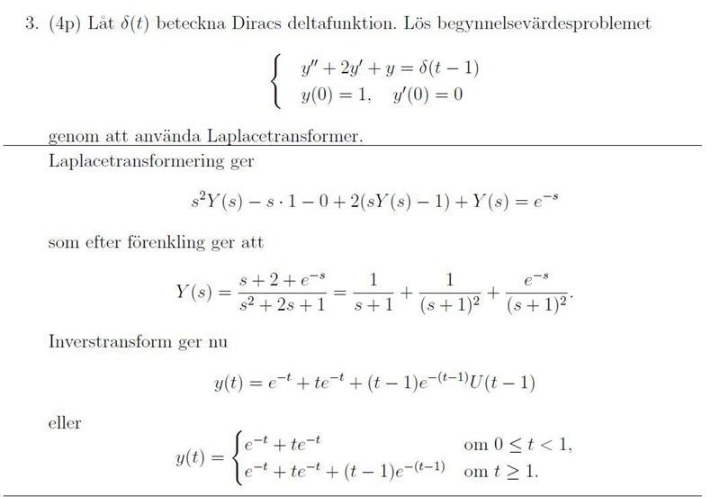 Hej, kan nästan få ut hela är en inverse laplace jag ej fattar hur man ska gå tillväga med, se mitt svar och uppgiften med facit under