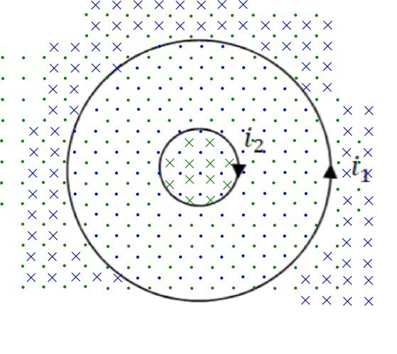 Men den magnetfältet som orsakar i(2) är riktat (.) och i(2) ville motverkar denna magnetfältet då måste den inducerar ett magnetfältet som riktat (x), och strömmens riktning kommer vara moturs, inte medurs.