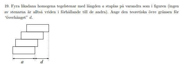 det totala uthänget av två block placerade på det tredje är (2)+(1) = 3a/4