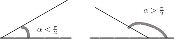 Okej så vad försöker du säga med båda figurerna du ritade? Den åt vänster alfa mindre än 90 grader är nedförsbacke ? Och sen den åt höger uppförsbacke