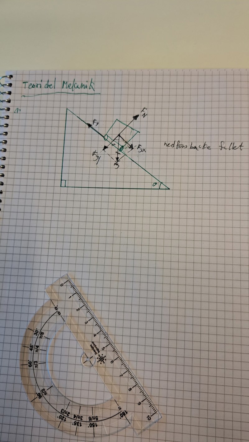 Ja så du ser att FN = Fgy , alltså är FN en katet i en rätvinklig triangel där mg är hypotenusan. Ser du här varför a och b är fel?