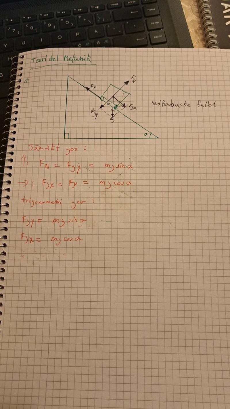 Hur menar du? Fn=mgsinalfa så som jag ritade.