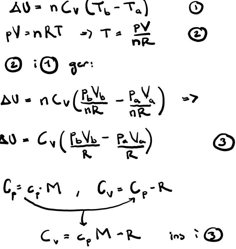 Beräkna värmen mellan a och b ifall pa = 1,08 bar, Va = 1,1 m³.