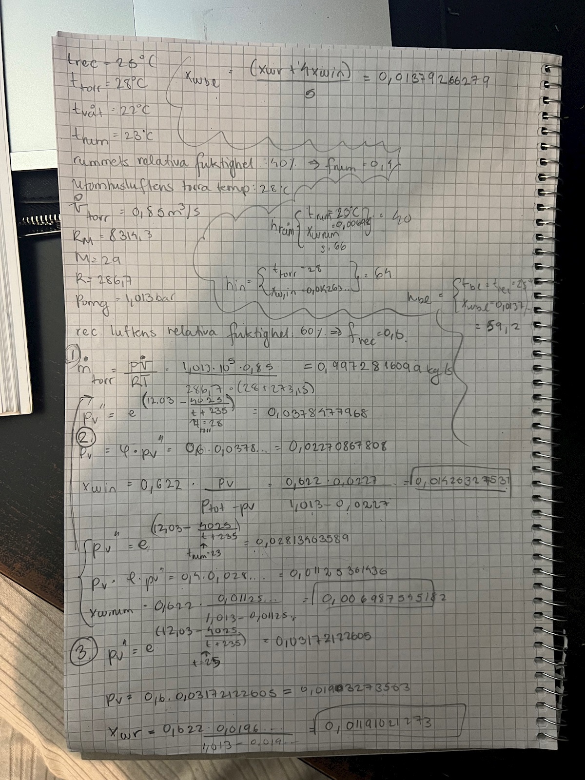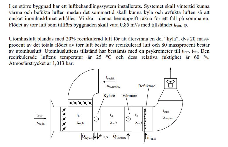 Här är vad jag hittills löst ut, men jag förstår inte hur jag ska räkna ut massflödet. Jag anar att det är någon formel jag ska använda mig av nedan. (jag använder mig av andra värden än de givna i uppgiften).