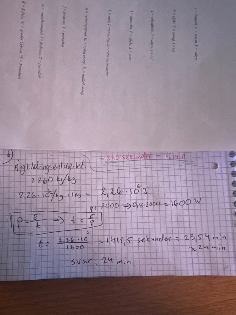 För nästa uppgift behöver du slå upp ångbildningsvärme eller ångbildningsentalpi i din formelsamling.