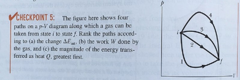 Jag tänker att ändringen i inreenergi är som störst när både tryck och volym ökar? Därför att dU=dQ+PV\displaystyle dU= dQ+PV. Så 4,3,2,14, 3, 2, 1?