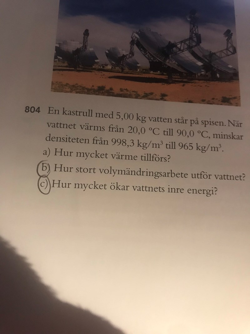 Vi behöver anta att inget vatten har kokat bort, utan att det fortfarande finns lika stor massa vatten. Hur stor är volymen av vattnet vid nära kokpunkten? Hur stor är volymändringen?