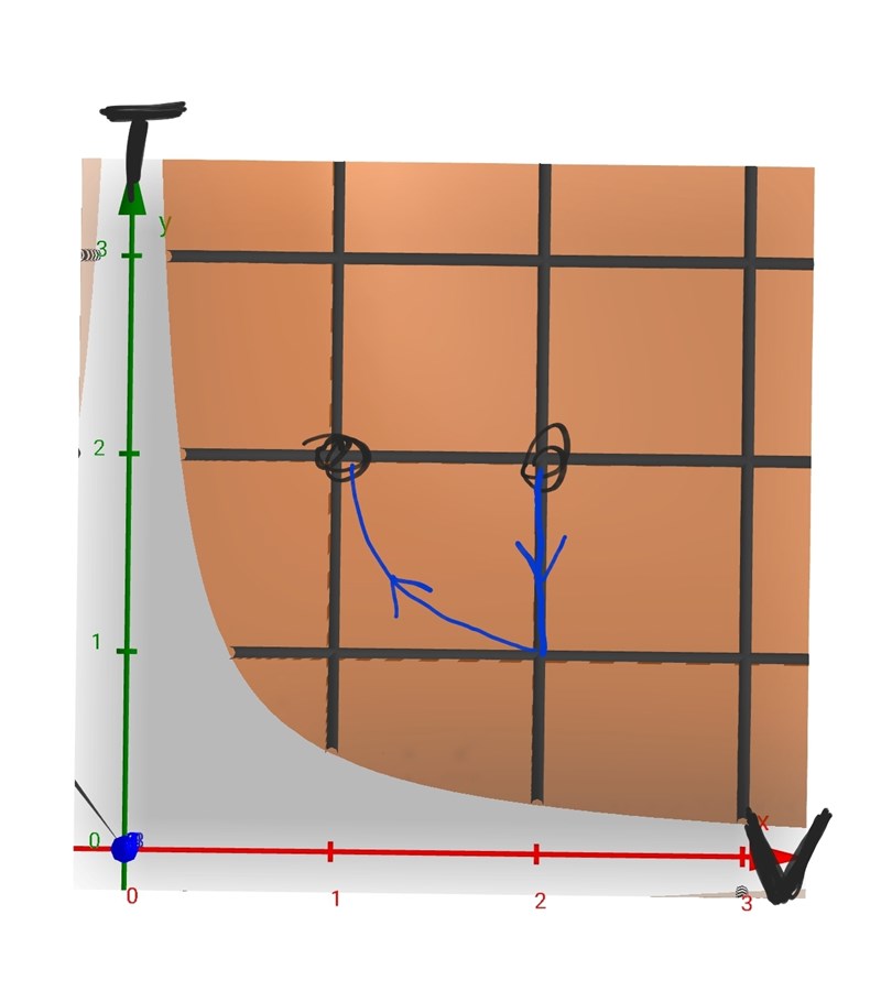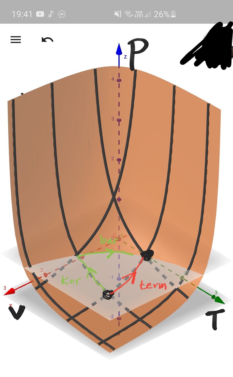 Är arbetet för en process som tar ett system från (V1, T1, P1) till (V2, T2, P2) en linjeintegral under P=P(V, T) längs en kruva från (V1, T1) till (V2, T2)? Här är en bild:
