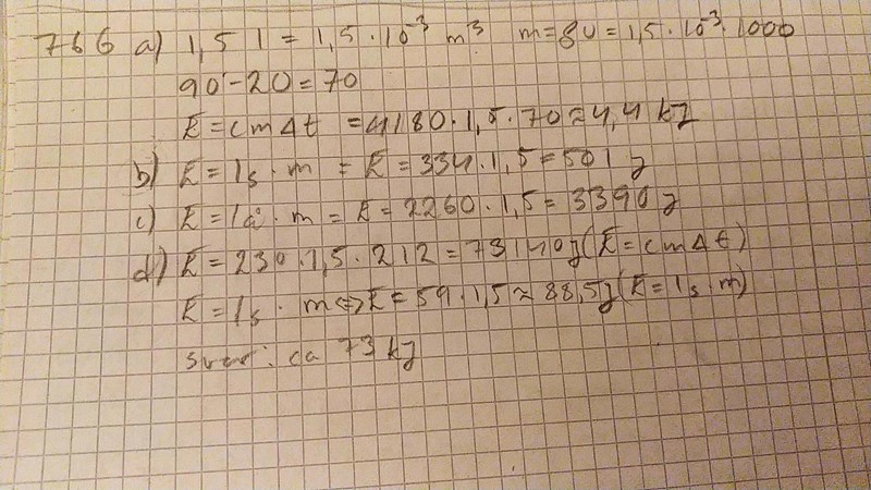 Jag har gjort resterande uppgifter men får inte rätt svar. B och C löste jag med hjälp av E=ls×m och E=lå×m respektive. Tänker att eftersom vattnets kokpunkt är 100°C och smältpunkten 0°C så behöver jag inte används E=cmt då vattnet redan har "rätt" temperatur. I D) så använder jag både E=cmt och E=ls×m och lägger ihop dem.