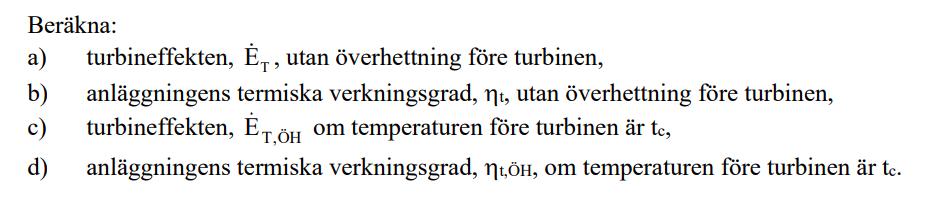 Jag har löst uppgifterna c och d som inkluderar överhettning, men undrar hur jag ska gå tillväga för att lösa a och b där man inte får räkna med överhettning?