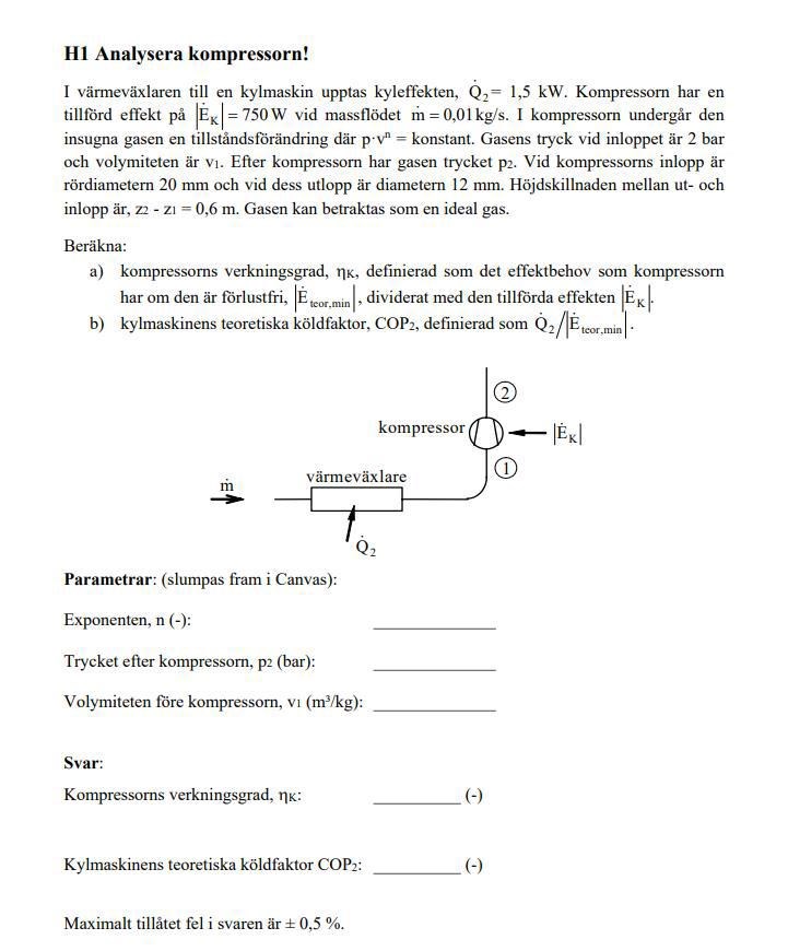 Hej har denna uppgift (se nedan) och har fått dessa värden angivna från uppgiften på en annan sida; , försökte me dessa uppgifter att lösa uppgiften men blev fel, har ej använt höjdskillnaden eller arean på röret så undrar vad de är jag missar?