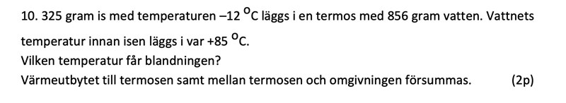 - det varma vattnet svalnar från 85 oC till temperaturen T
