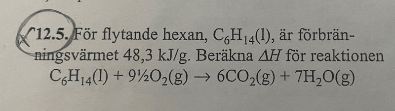 Jag tänkte först att lösningen är 48,3 men det var ju inte! Enligt facit, så står det att DH = q • M, jag är lite förvirrad nu för jag lärde mig att DH : q/n. Är DH= q•M en annan formel eller?