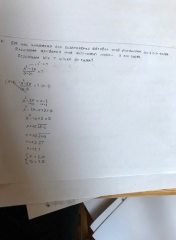 hej, jag vet inte riktigt hur jag ska kunna lösa talet 7. Jag förstår till viss del hur jag ska gå tillväga, men kan tyvärr inte lösa hela den. Någon som vet hur jag ska göra. Bild kommer nedan: