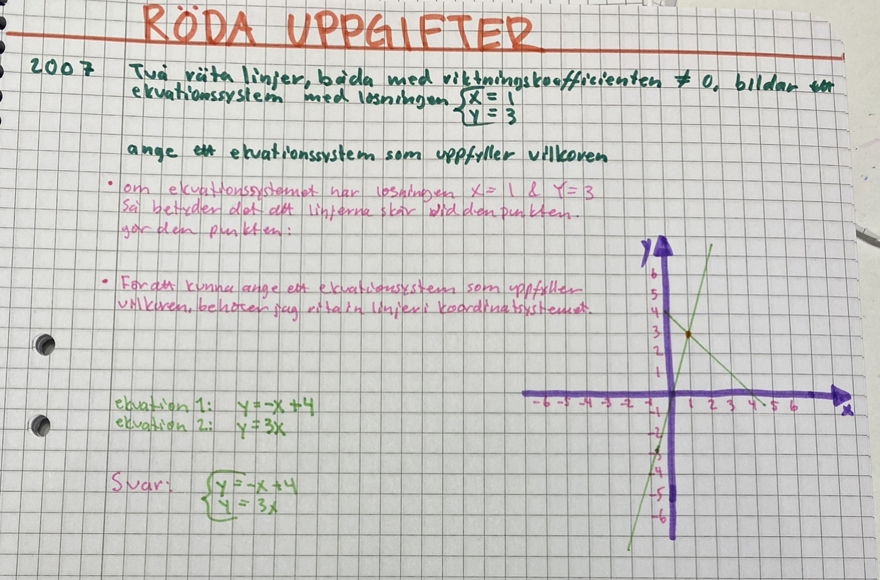 Den givna uppgiften har hur många olika svar som helst. Om ditt förslag till ekvationssystem har den lösning som fordras i texten så är ditt svar ”rätt”.