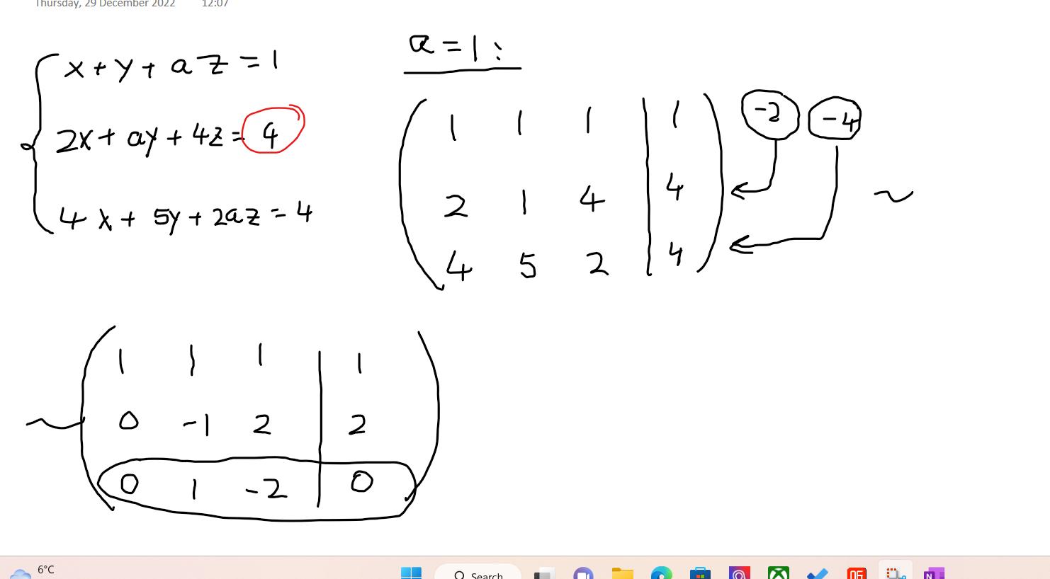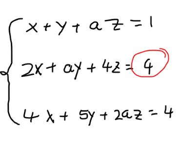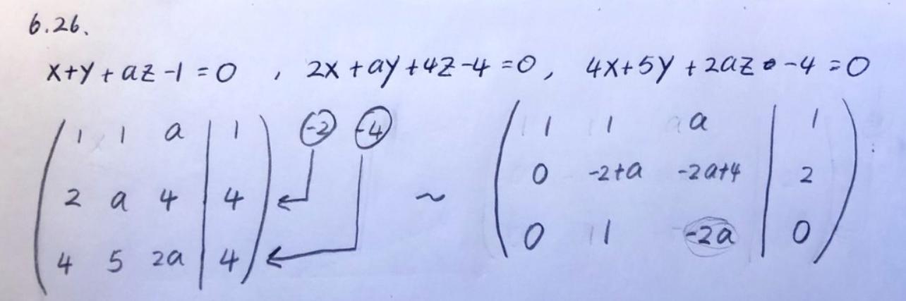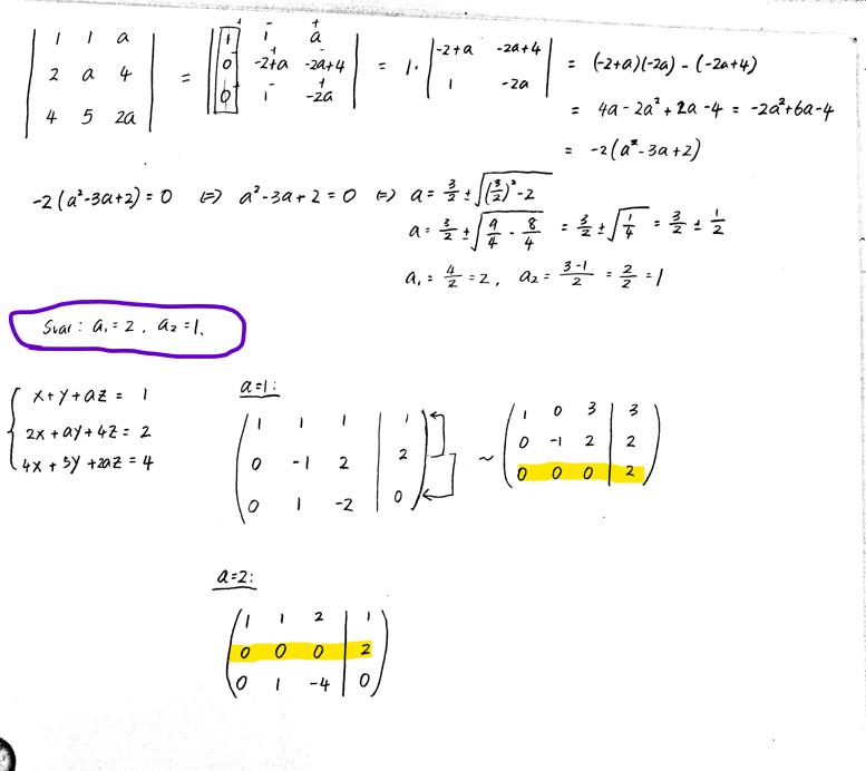 Sätt slutligen in värdena på a i din matris och lös ekvationssystemet på vanligt vis, lösningarna bildar två linjer.
