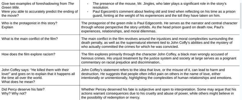 Det Àr svar pÄ frÄgor om filmen The Green Mile