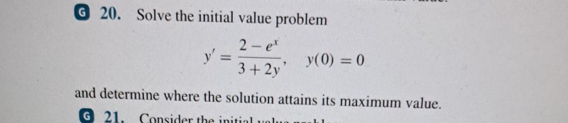 Så vi ska hitta den allmänna lösningen mha initialvillkoret och sen derivera den funktionen för att hitta derivatans värde och undersöka max elr min?