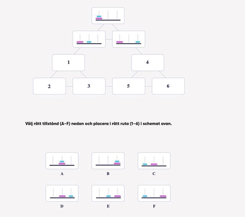 Till 1 kan du inte välja D eftersom du då måste flytta två plattor. Den enda som du kan välja där är E.