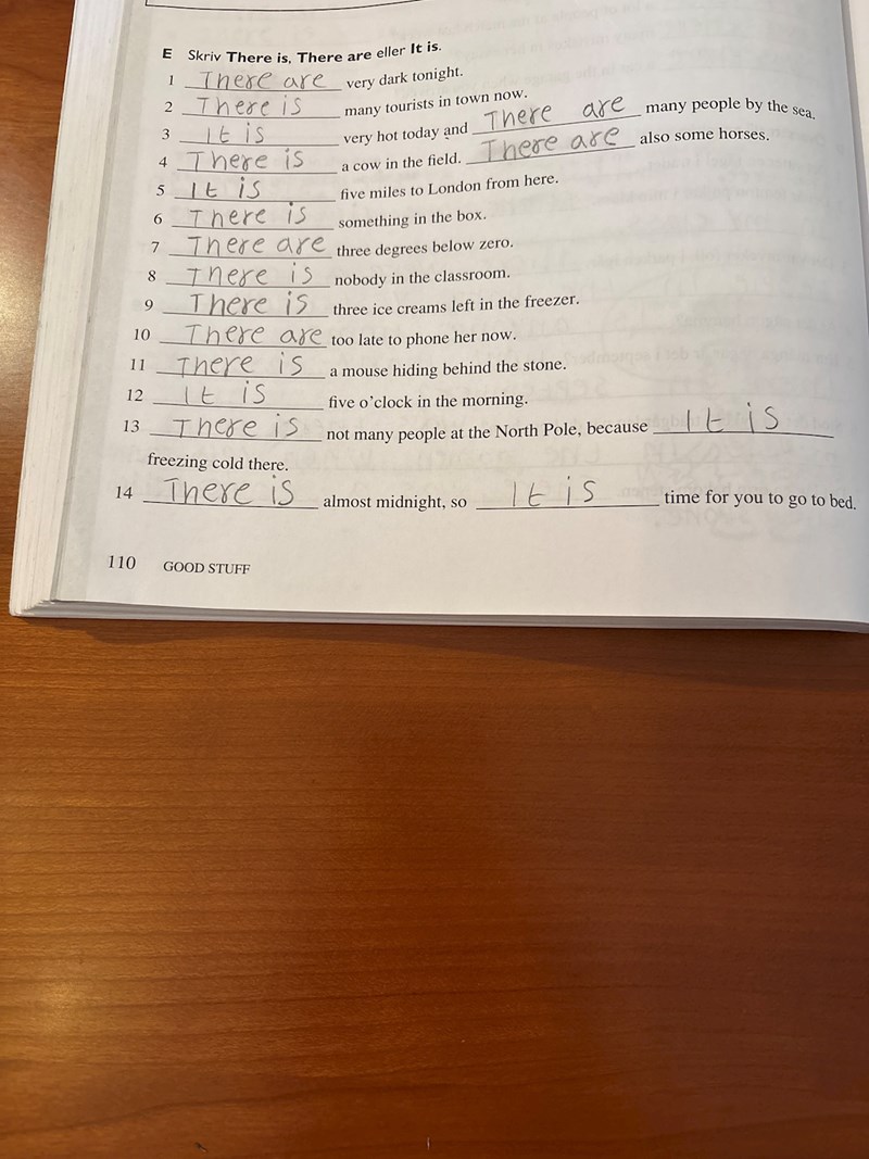 1. There is/are kan du försöka tänka på som svenskans ”det finns”. Medan it is är mer ”det är”.