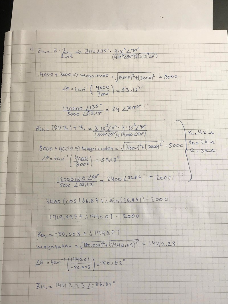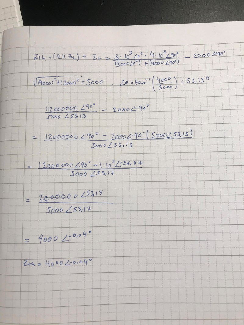 Nä, du kan inte addera vinklarna som du gör i täljaren. Är det inte enklast om du gör som förra gången att du räknar ut realdel och imaginärdel med cos och sin, först. Och sedan subtraherar den imaginära kapacitiva lasten. Och sedan återomvandlar till magnitud fasvinkel med arctan?