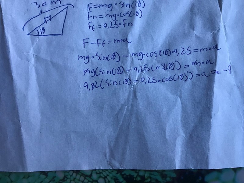 "En låda faller längst ett 18 graders lutande plan med längden 30m. Friktionkraften som verkar på lådan är 25% av normalkraften. Hur lång tid tar det för lådan att glida längst planet?" är frågan som jag har väldigt svårt med? kan någon hjälpa mig