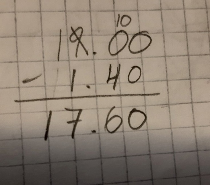 Berätta hur du gör när du får 19:00 - 1:40 att bli 17:60.