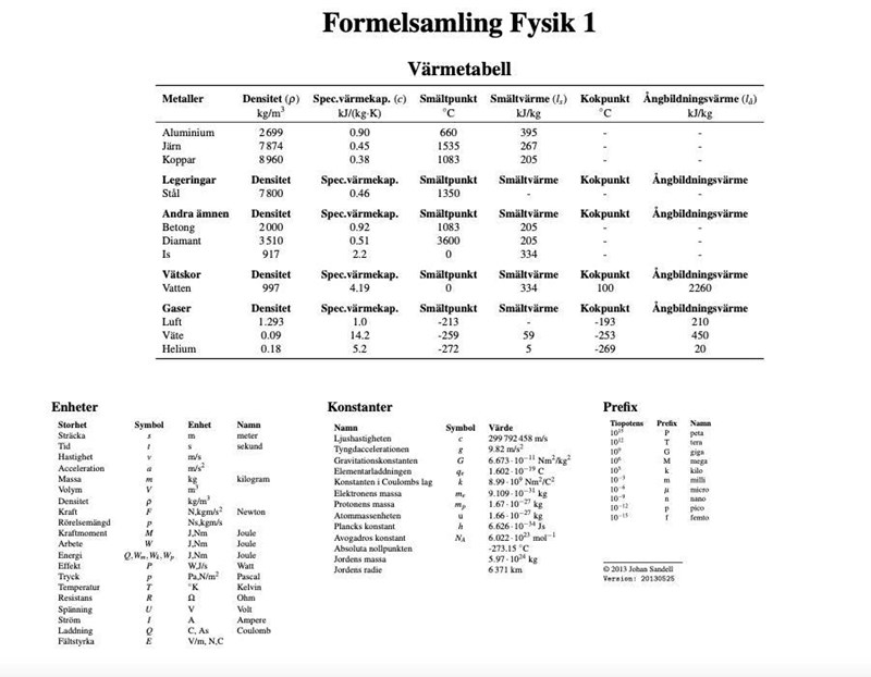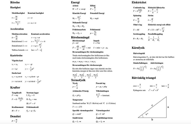 Om det inte är mer än de båda sidorna, verkar dessa formler saknas. Be din lärare om den formelsamling som är tillåten att använda på provet.