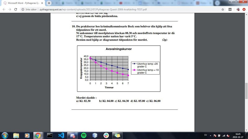 Om du fick kurvan för 5 grader skulle det vara för lätt. Givet de två kurvorna du har, var tror du kurvan för 5 grader går?