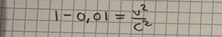 Alltså v=1-0,01c0,995 c.v = \sqrt{1-0,\!01} c \approx 0,\!995 \ c.