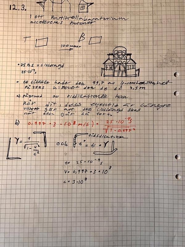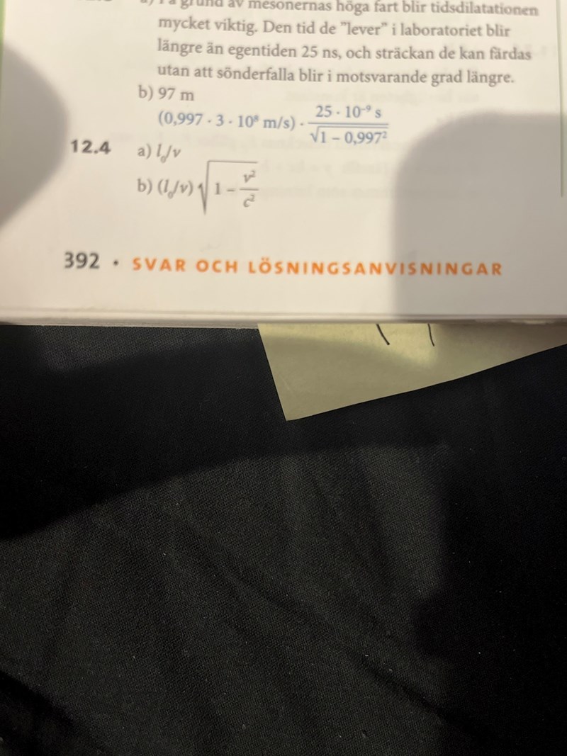 jag förstå mig inte varför c bli 0.97^2 . De röda jag skrivit är svaret i facit. Men ska c inte vara 300Mm?