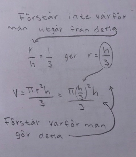 Jag har fastnat i förståelsen för tillämplig av kedjeregeln när de gäller koner. Jag förstår varför man byter ut radien mot en "ekvation" för att bara få en variabel, det jag inte förstår är hur det blir just radien/ höjden (se bild nedan) då jag inte ser den koppling till detta i formeln för volymen för konen. Jag förstår det så att från lösningsförslaget min lärare givit att det är för att få förhållandet mellan hela konen och den delen som är "fylld" eftersom det är likformigt men jag har en känsla av det kan vara en feltolkning?