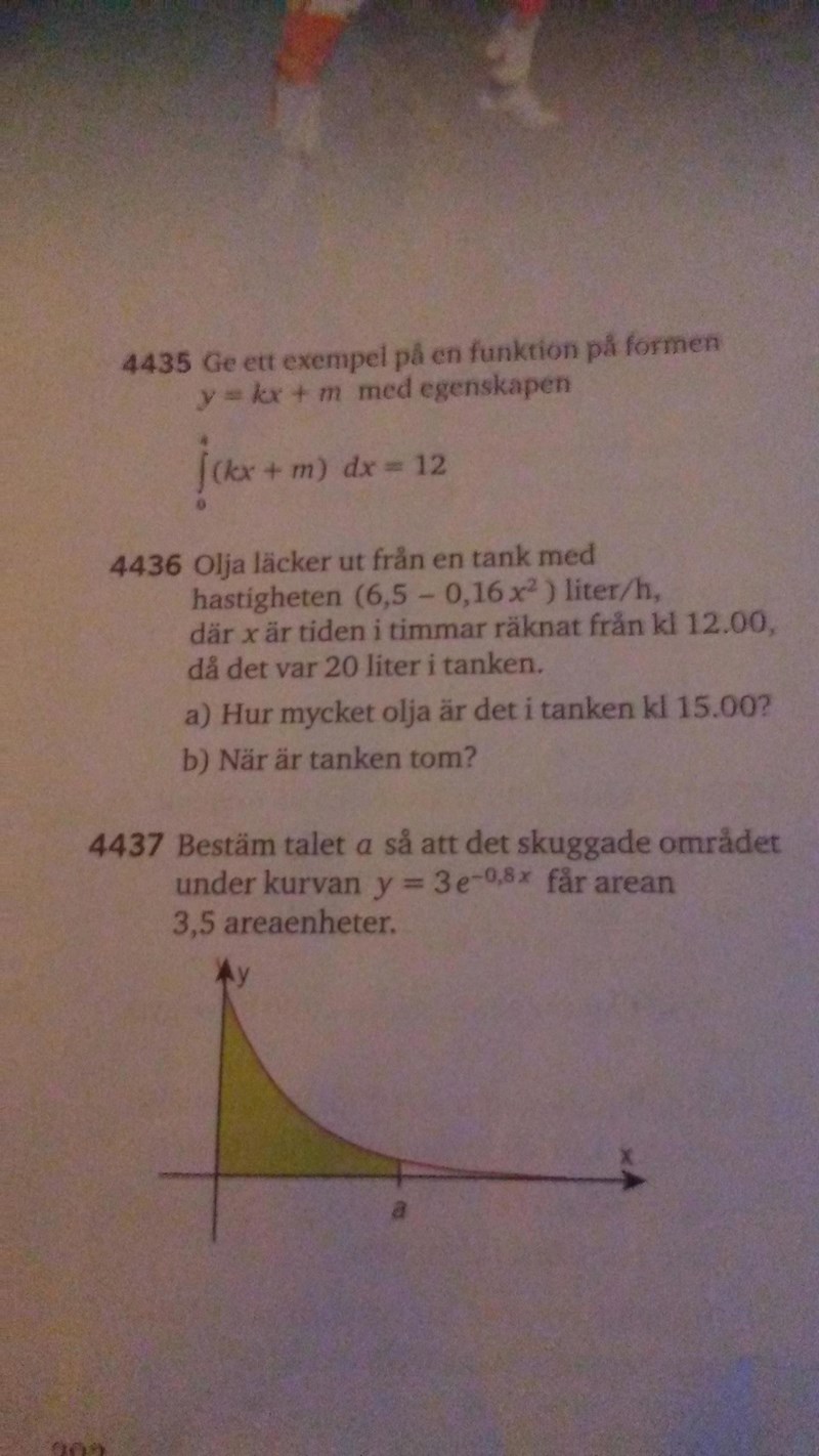 jag har fastnat på 4436 både a och b jag gjorde en primitiv funktion räknade från 0 till 3 dvs som integrationsgränser sen plusa med 20 liter fick änså fel svar