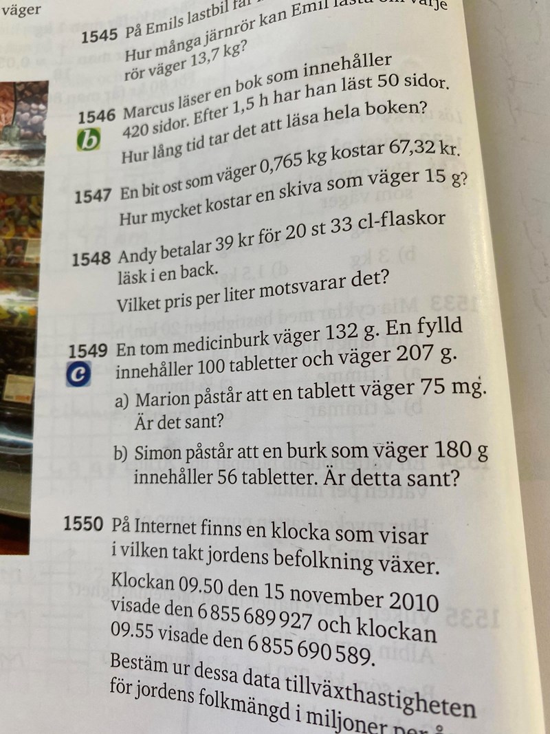 Hej! Jag behöver hjälp med 1549 B. Svaret är nej, den innehåller 64 st. Hur ska jag tänka?