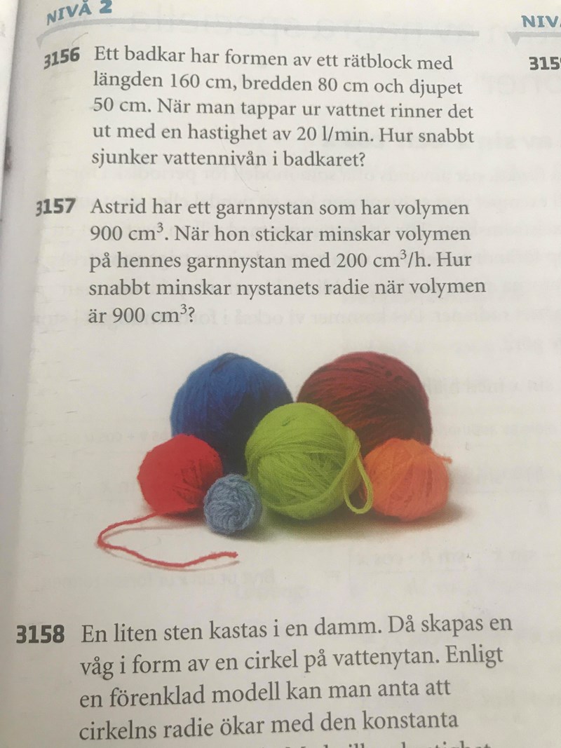 Smaragdalena skrev:Vilken radie har garnnystanet när nystanets volym är 900 cm3? Du har använt fel uttryck för att beräkna detta.