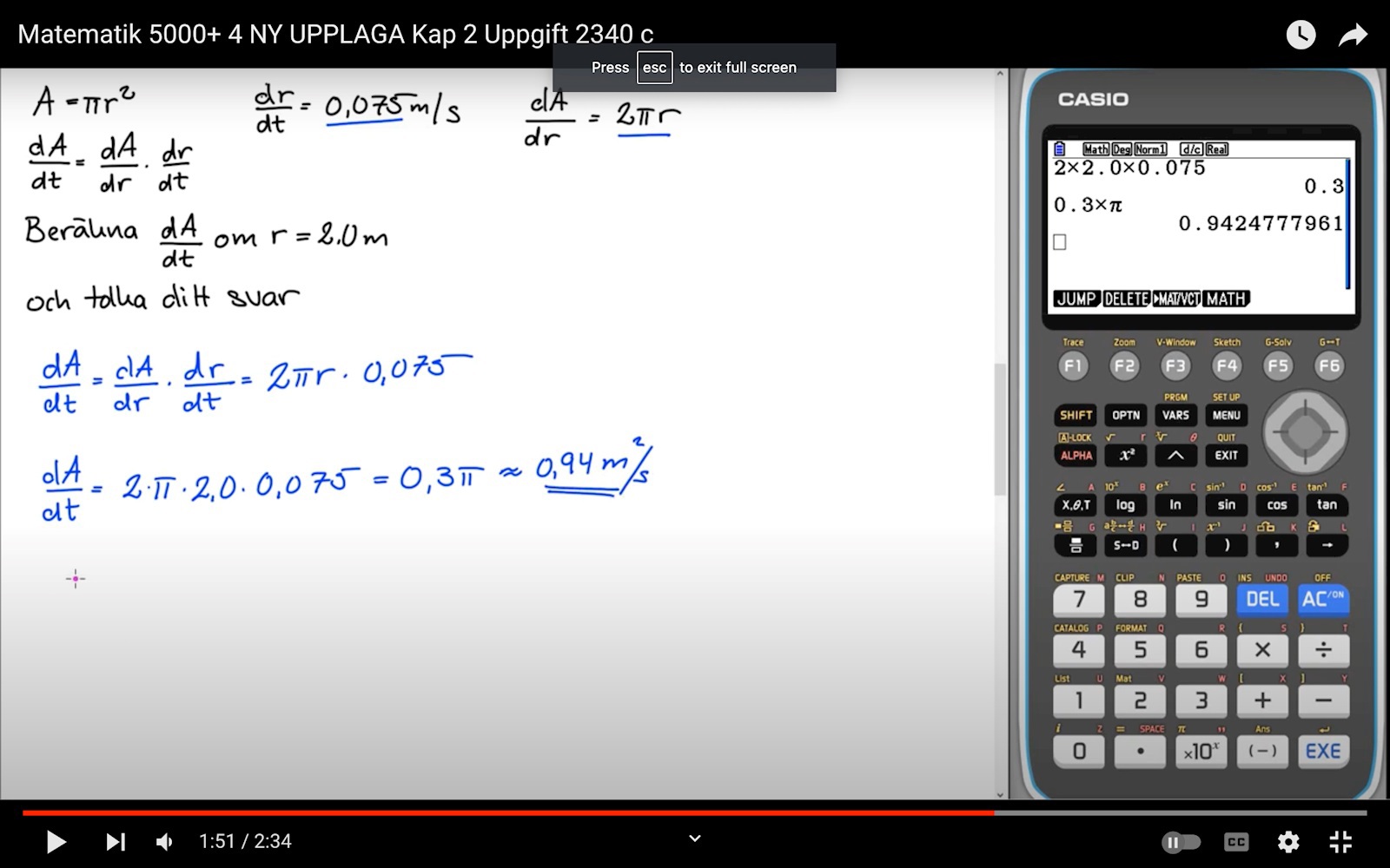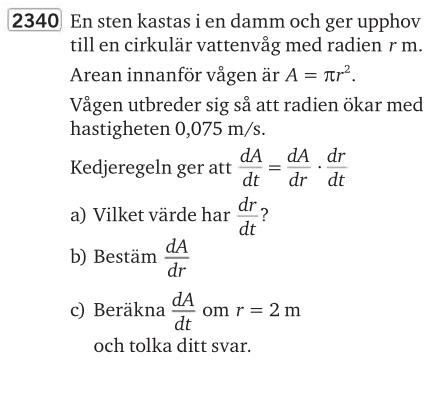 Yngve skrev:Yngve skrev:Generellt gäller att tidsderivatan av en area beskriver hur arean ändras över tid, alltså är enheten area per tidsenhet.
