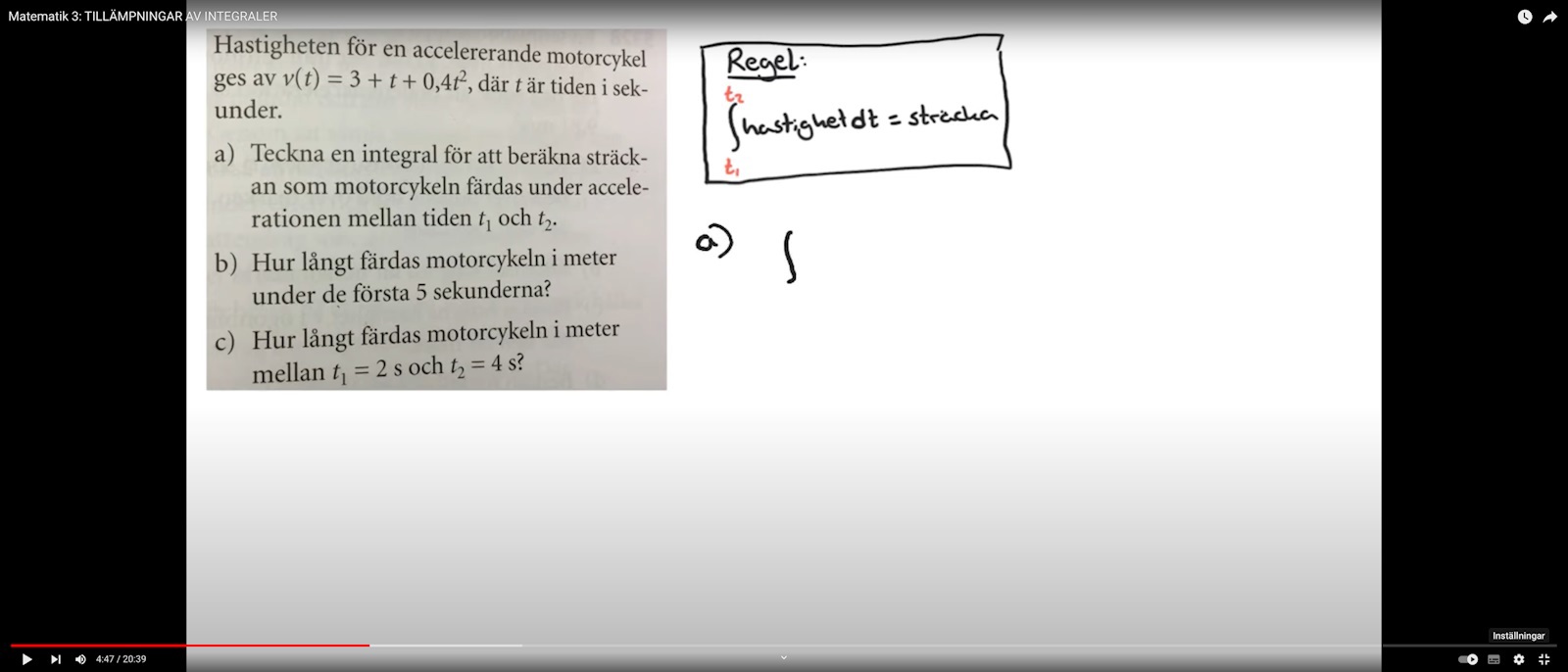 Jag undrar lite angående olika integraler och deras tillämpningar. Hur vet man vad man får ut? I exemplet nedan så anges hastigheten. Hur vet man då att integralen ger sträckan? Finns det något sätt att härleda detta eller knep/regel?
