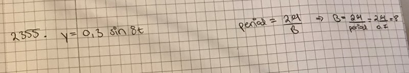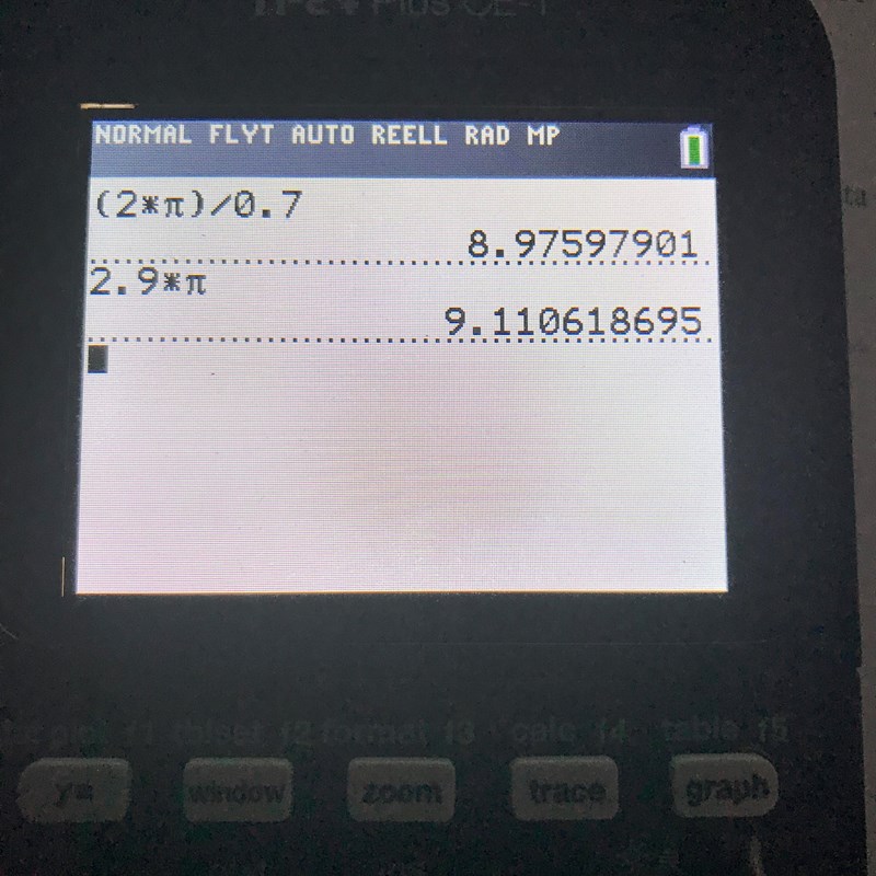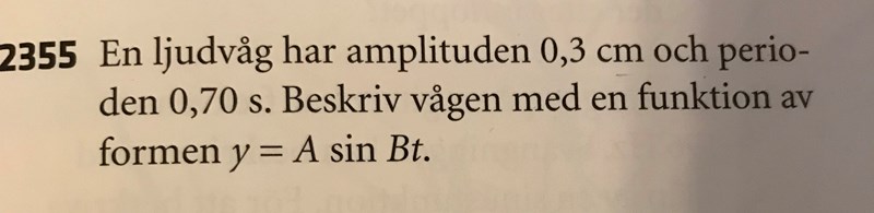 Hej, jag har följande uppgift att lösa och jag gjorde nästan rätt bara att mitt ”B” dvs talet framför t i funktionen inte stämde överens med facits. Vad är det för fel jag gjort?