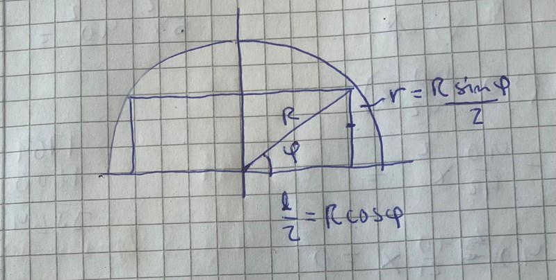 R^2 = (h/2)^2 + x^2