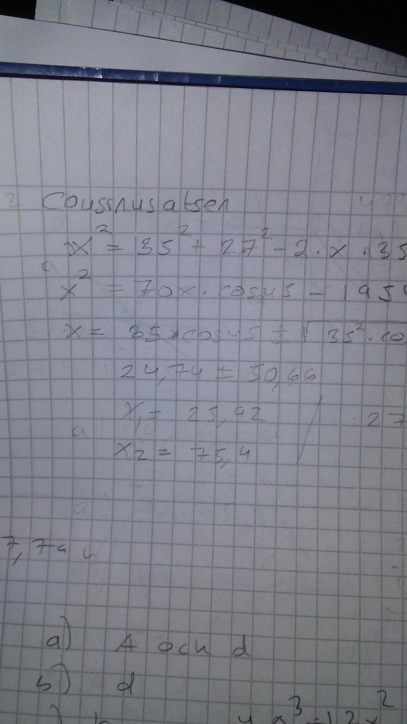 Jag har försökt lösa som jag kommer visa men får ändå fel svar på cousinusatsen vet att svaren ska va samma som sinutsatsen.fick a rätt men inte b uppgiften på 5260 b)