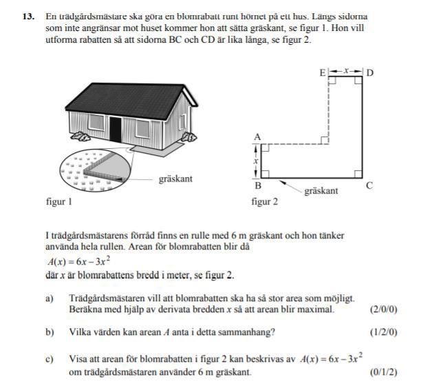Men jag förstår inte fråga b, ska jag bara ta ut arean som är möjliga att ha inom den funktionen?...