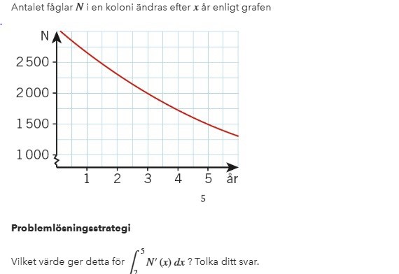 Man kan då läsa av grafen direkt och subtrahera N(5) - N(2) = 1500 - 2200(ca) = -700
