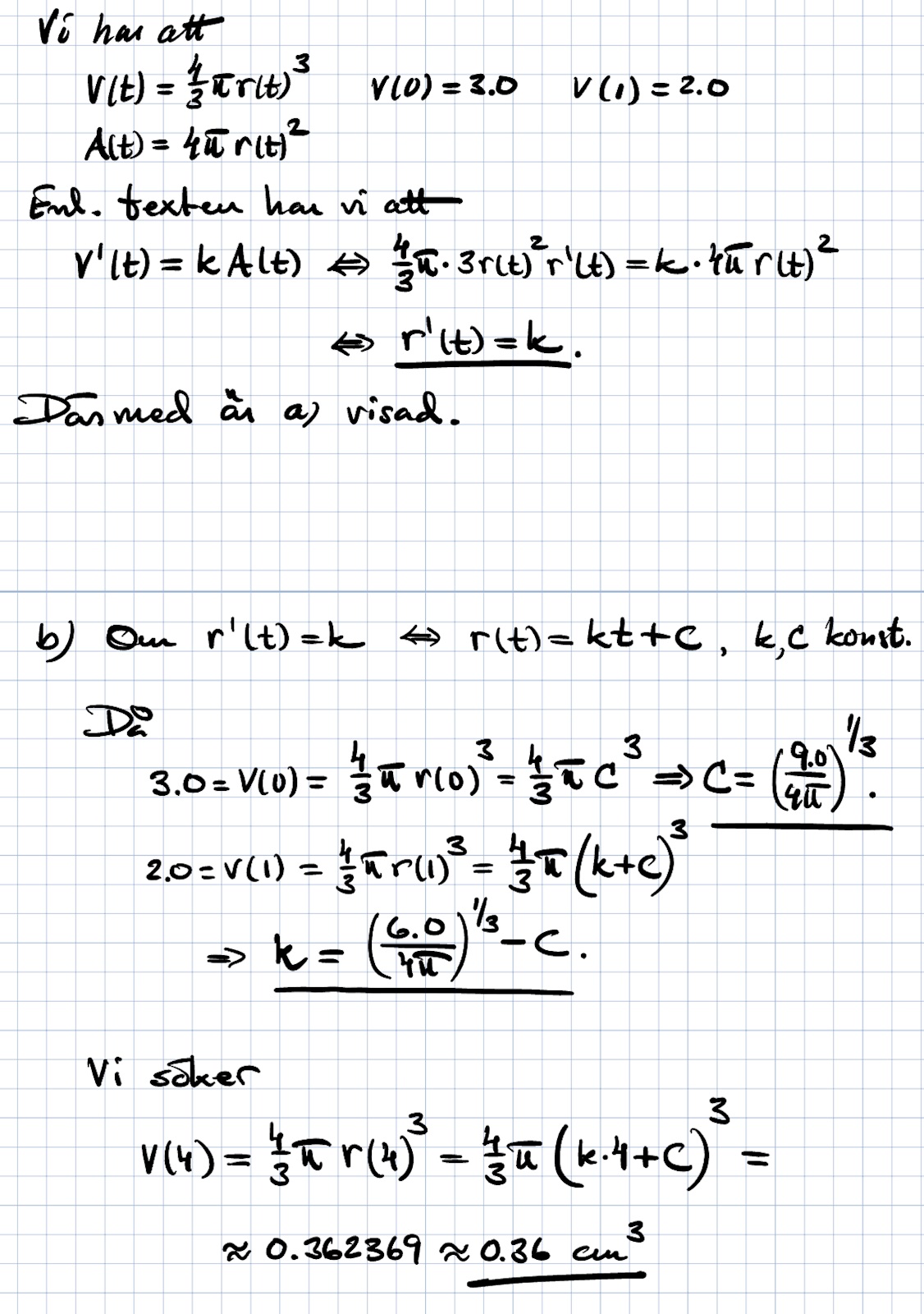 På a hur vet jag att jag ska använda just den funktionen du skrev av v(t) varför byter jag just ut den med h