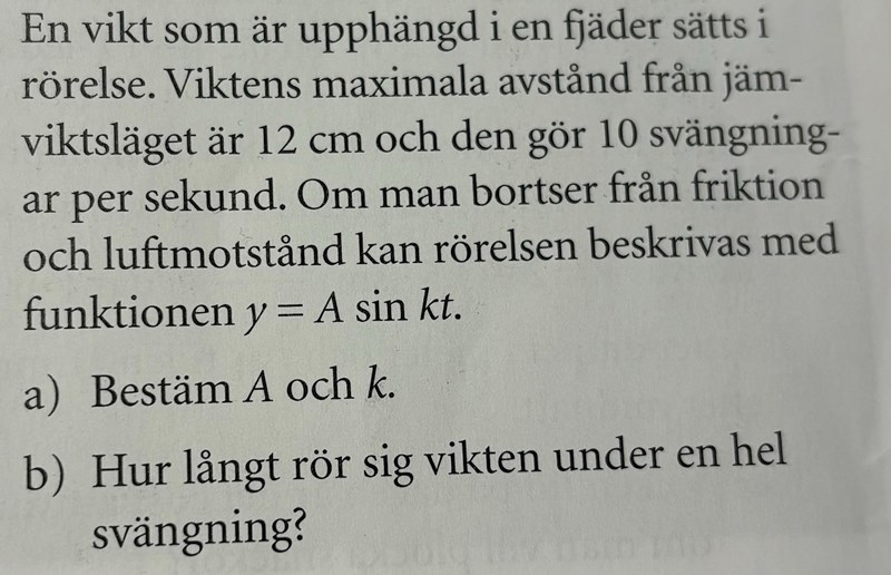 Jag tänkte att en svängning är 3 amplituder (dvs två toppar och en dal) och därför 3 x 12, men jag har tänkt fel. På facit står det att 4x12 =48 cm.