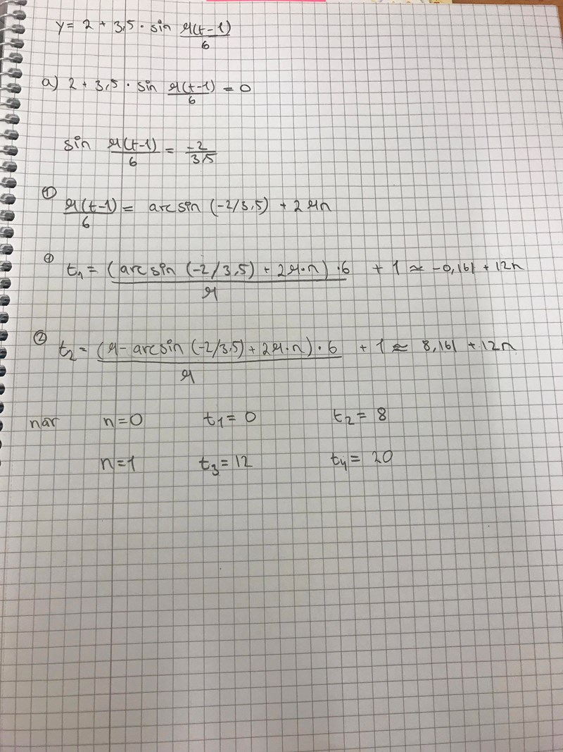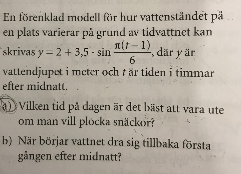 1). Nej, det borde vara bäst att plocka snäckor när vattendjupet är så lågt som möjligt, d v s när sinus-uttrycket är -1.