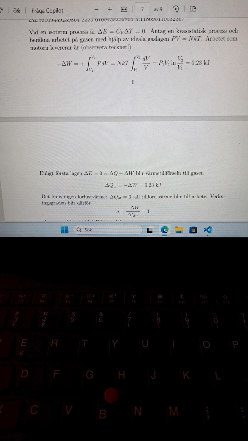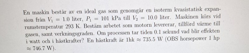 tillförd värme/arbete vid isotermisk expansion